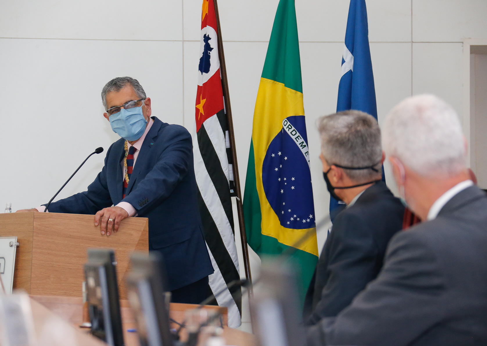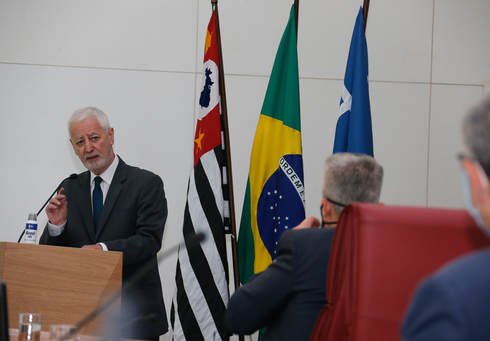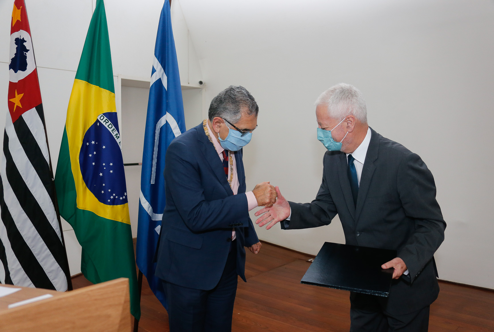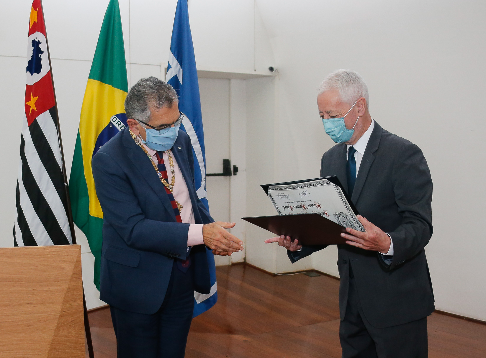 Cerimônia para outorga do título do doutor “Honoris Causa” ao Prof. Dr António da Nóvoa. Autoridades presentes: Vahan Agopyan (reitor da USP), Marcos Neira (diretor da FEUSP), Denice Catani e Carlota Boto. Local: Sala do Conselho Universitário. Foto: Cecília Bastos/USP Imagem